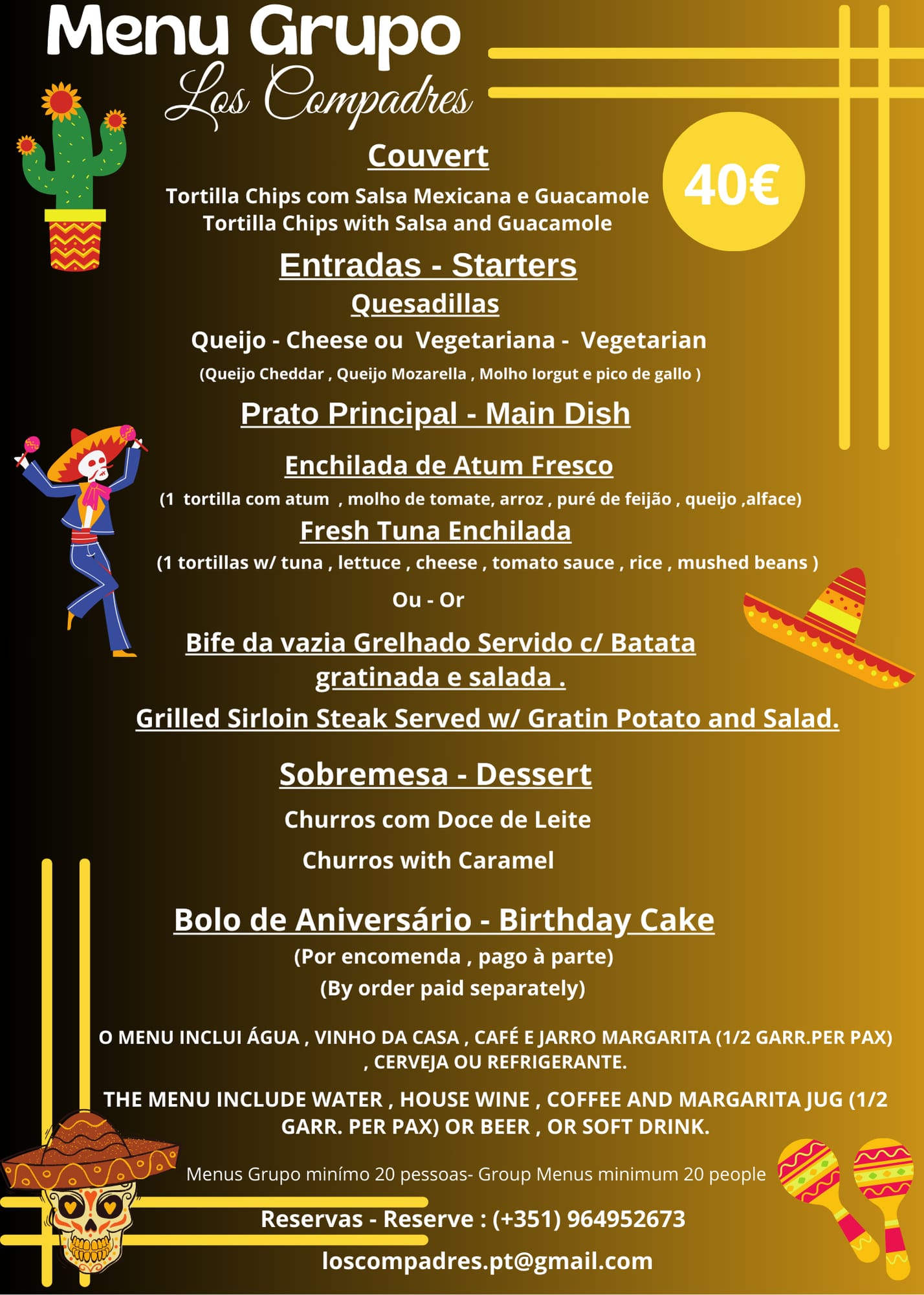 Bem-vindo ao Los Compadres, o restaurante mexicano que tem tudo a ver com família, amigos e comida fantástica! No Los Compadres, nos orgulhamos de servir a deliciosa e autêntica culinária mexicana que irá atormentar seu paladar e transportá-lo direto para o coração do México.